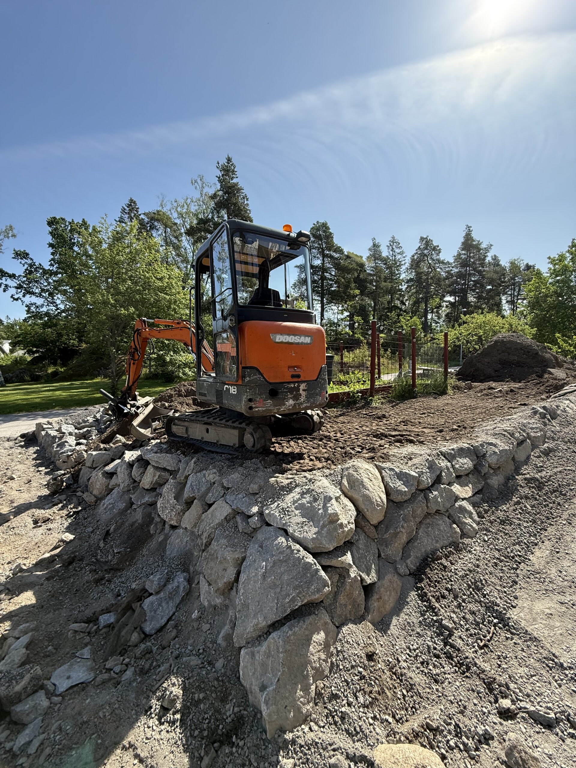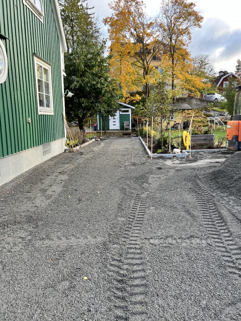 Grusgång och garageuppfartStödmur i sprängstenTomtplaneringGrusad uppfartJordkällareMarkförberedelser inför plattsättningStenspräckning inför nybyggnationStödmur i sprängstenTomtoptimeringKomplex dränering i trånga utrymmenMarkförberedelser inför plattsättningDränering